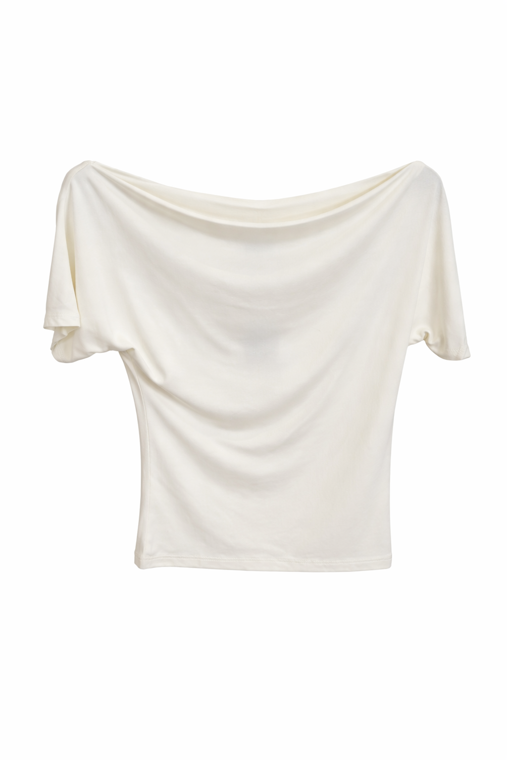Geweldige top met wijde hals. Ook te dragen als One-shoulder top. Wit kleurig.