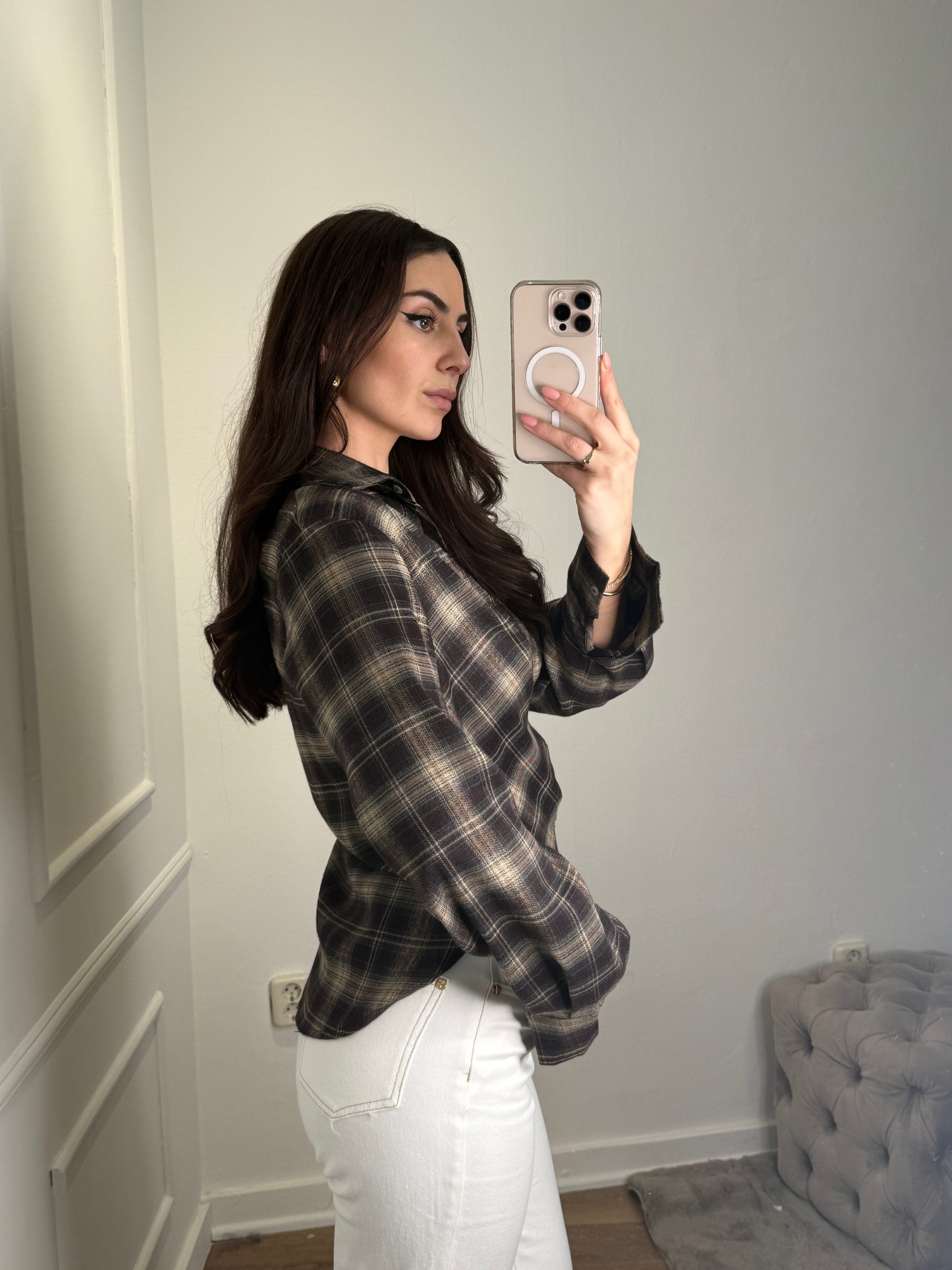 Waist blouse geruit - bruin