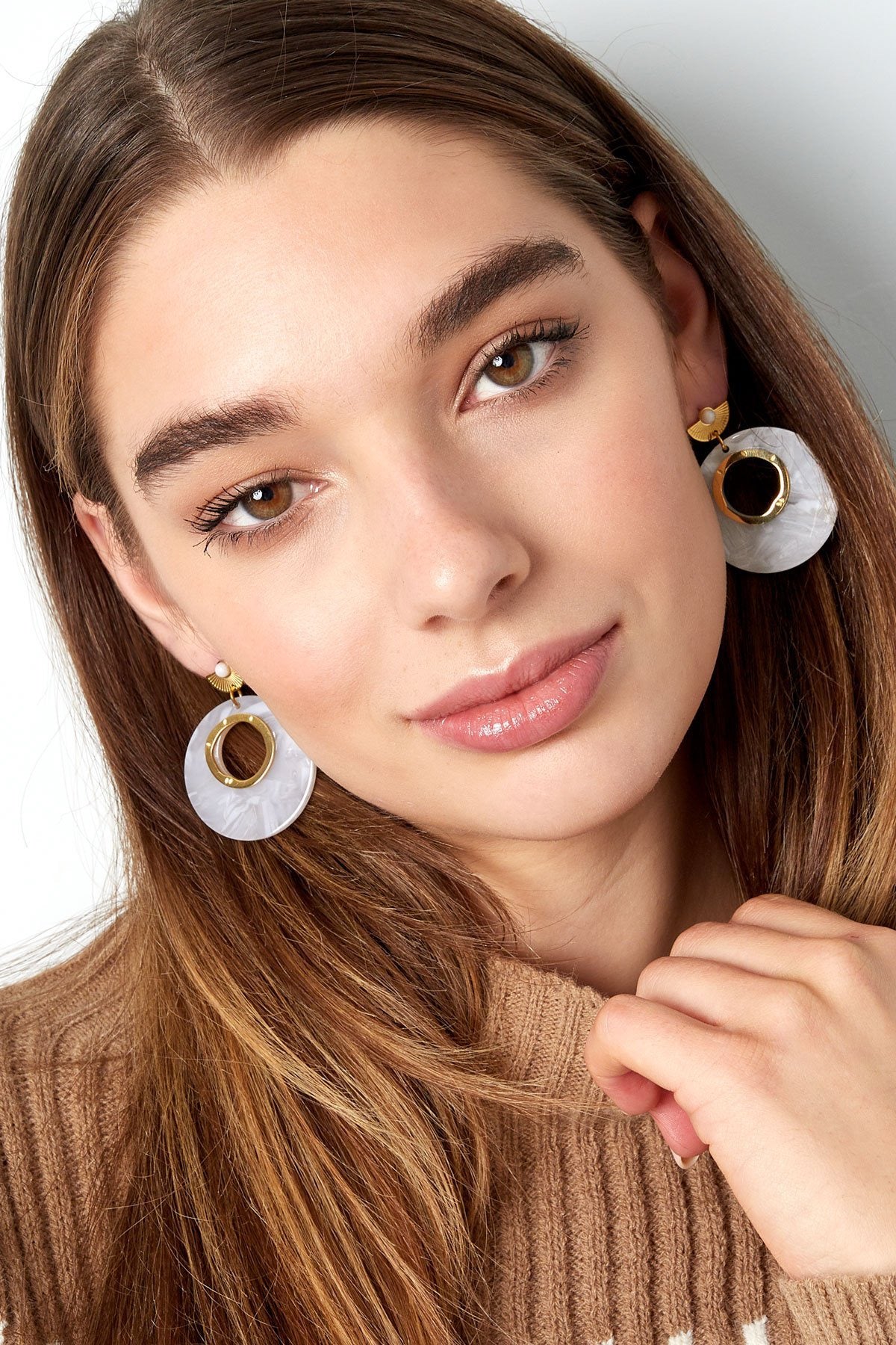 Oorbellen rond witte details - wit goud