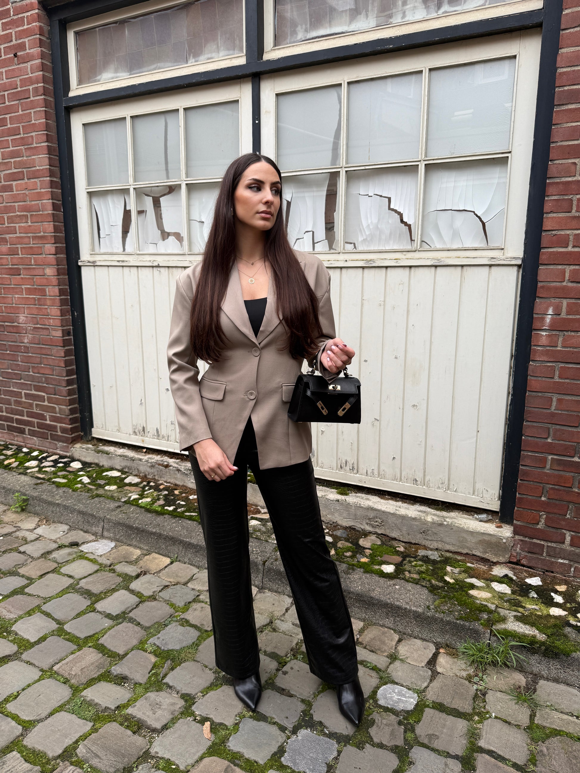 Gecombineerd met de snake print broek zwart en de leerlook kittenheel laarzen