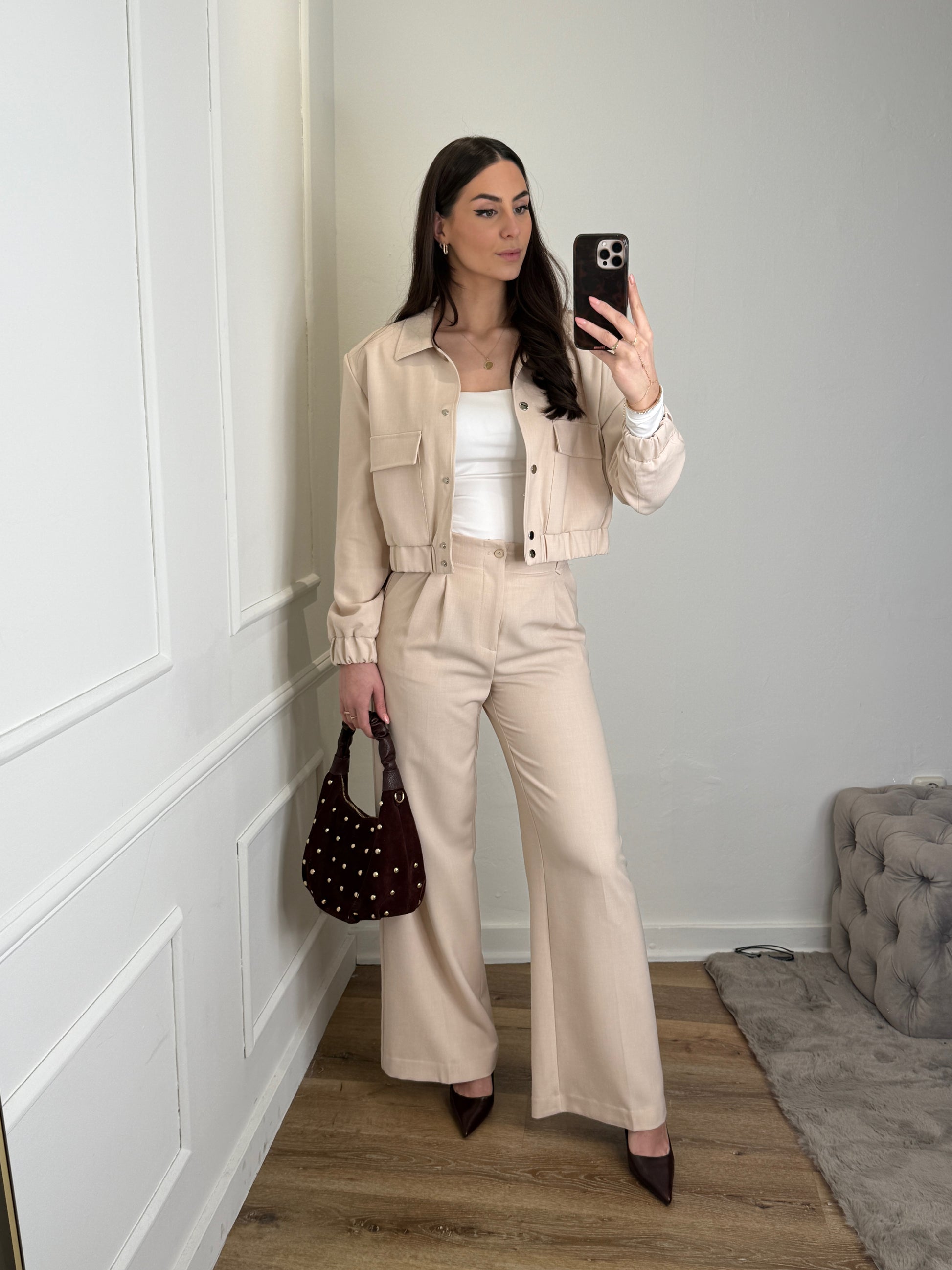 Dit super leuke jasje is super mooi te combineren met onze bijpassende pantalon! Jasje valt naar maat en heeft mooie knopen aan zowel de mouwen als de sluiting voor extra details.