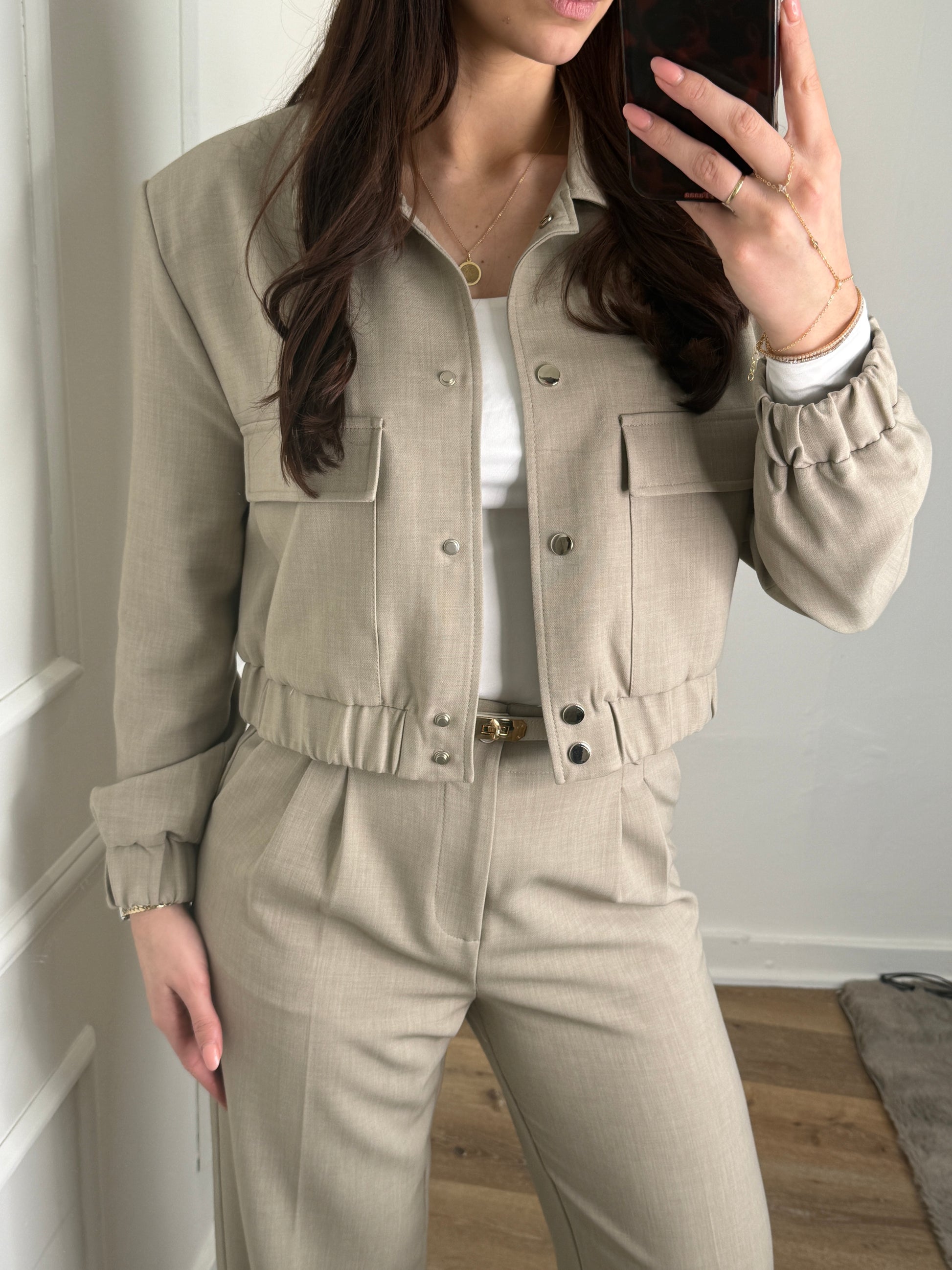 Dit super leuke jasje is super mooi te combineren met onze bijpassende pantalon! Jasje valt naar maat en heeft mooie knopen aan zowel de mouwen als de sluiting voor extra details.