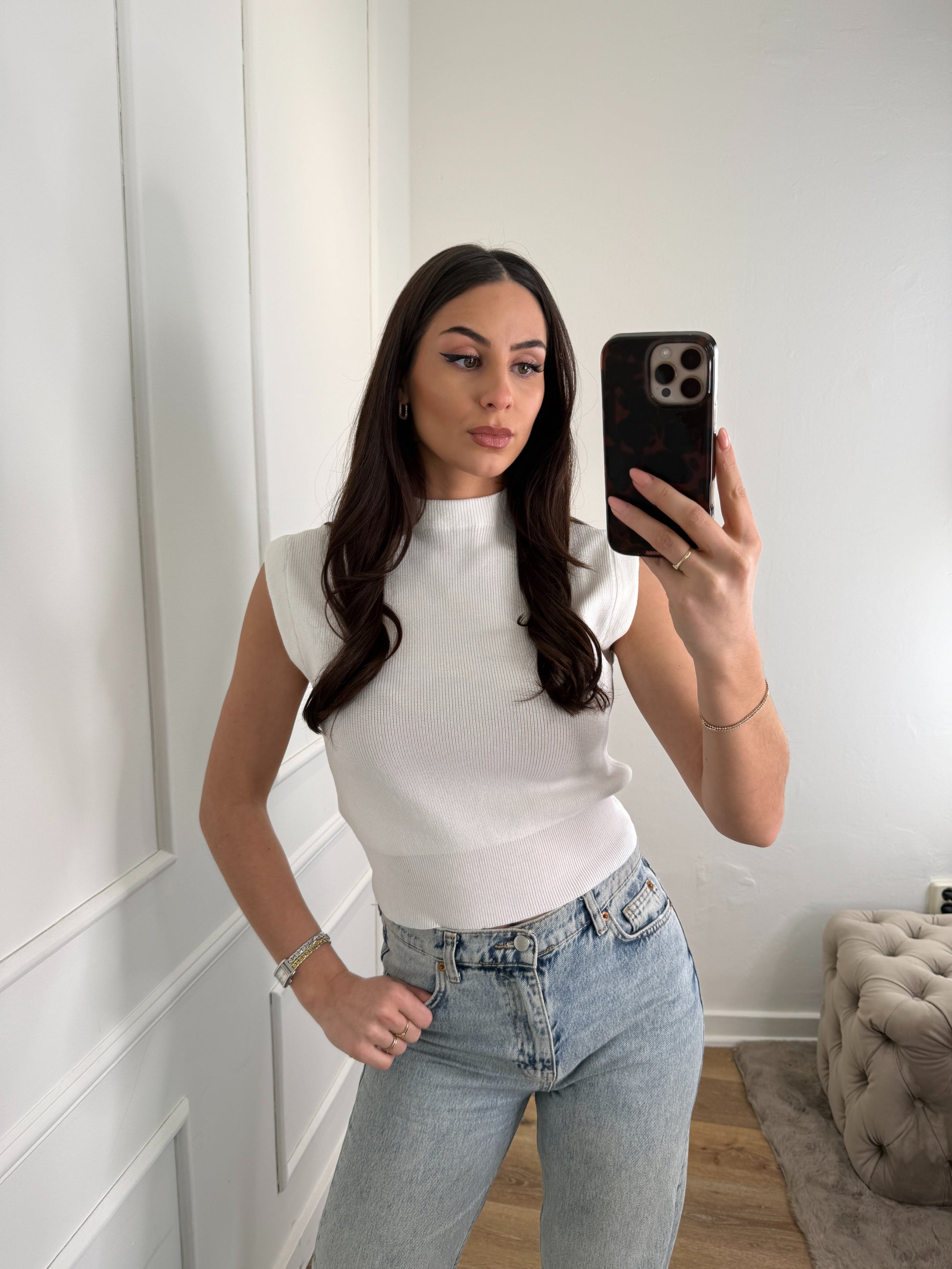 Deze geweldige mouwloze top is met zoveel te combineren! Echt een musthave. Wit kleurig.