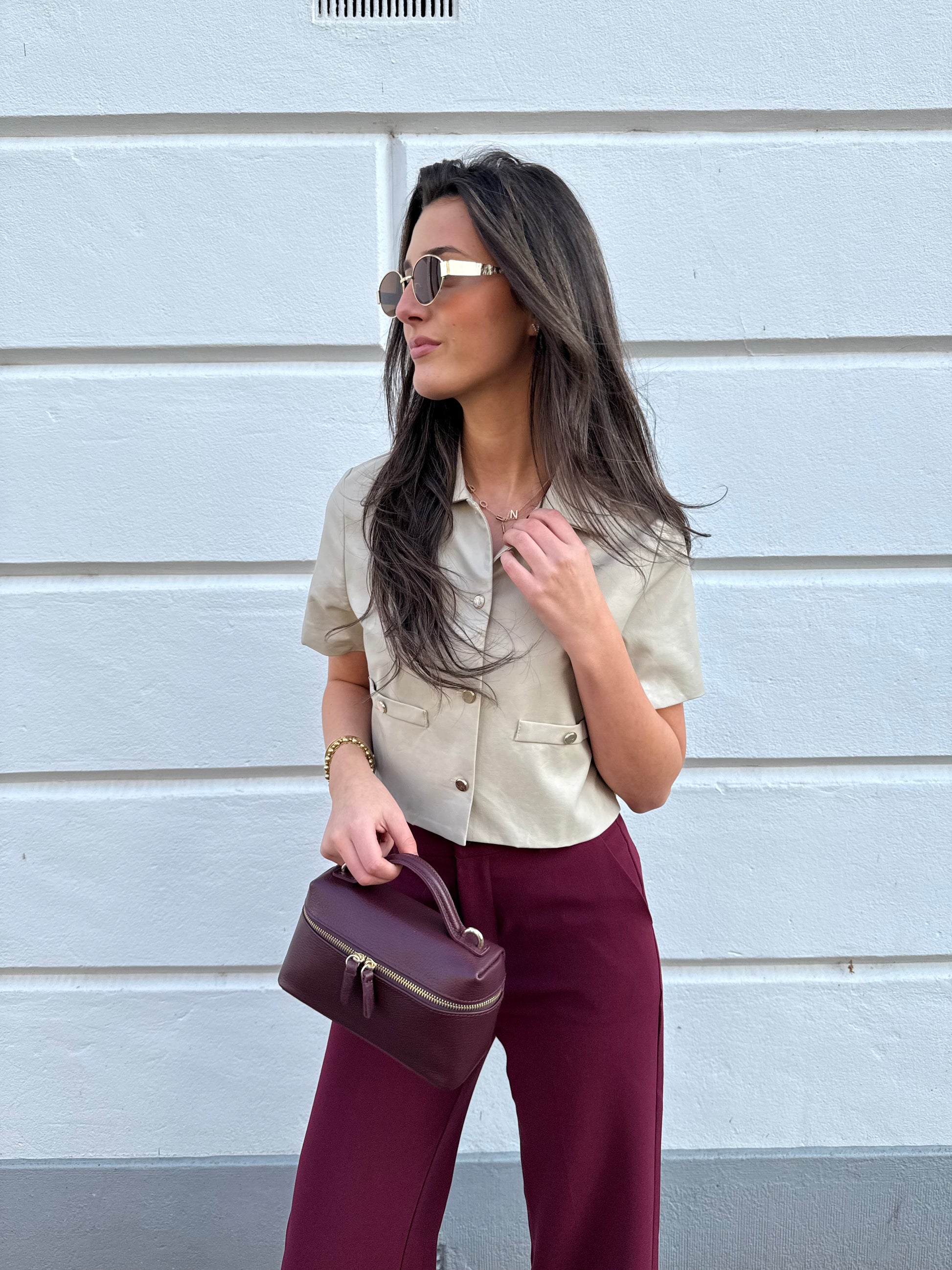 Een korte mouwen jasje, met een mooie leren uitstraling. Draag dit jasje dicht met een mooie pantalon, of het bijpassende shortje. Of draag open met een leuke top of jurk eronder.
