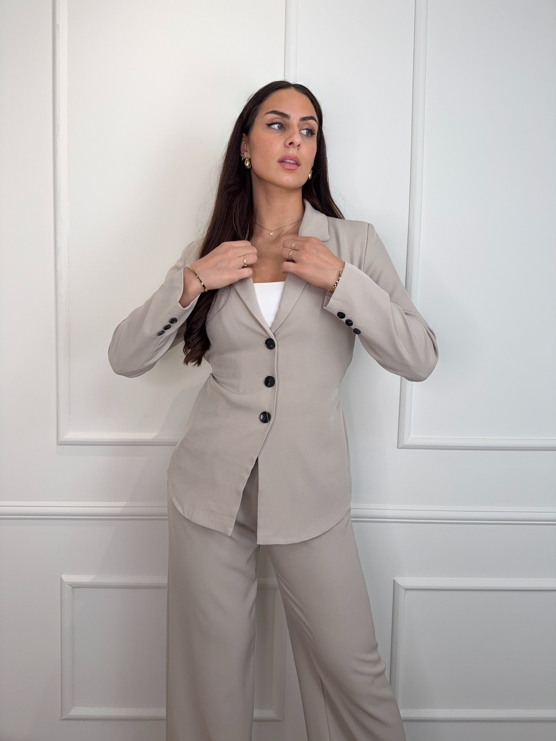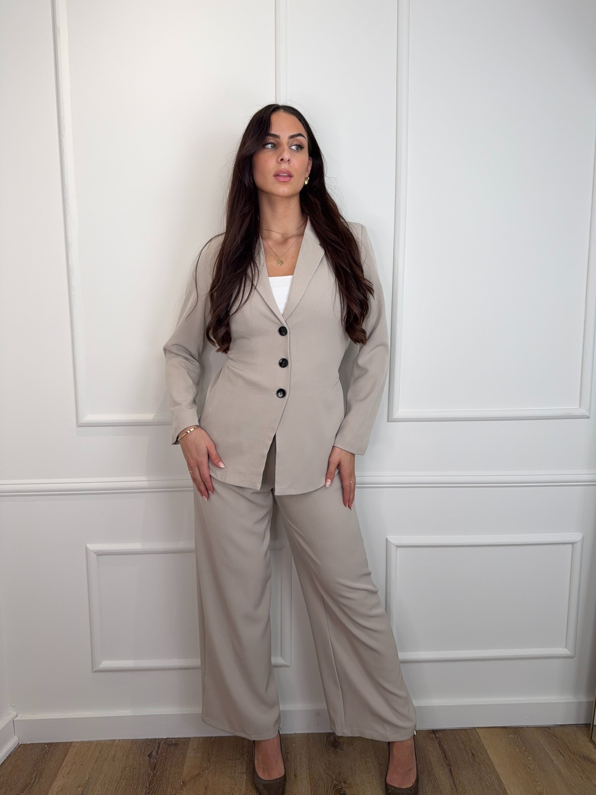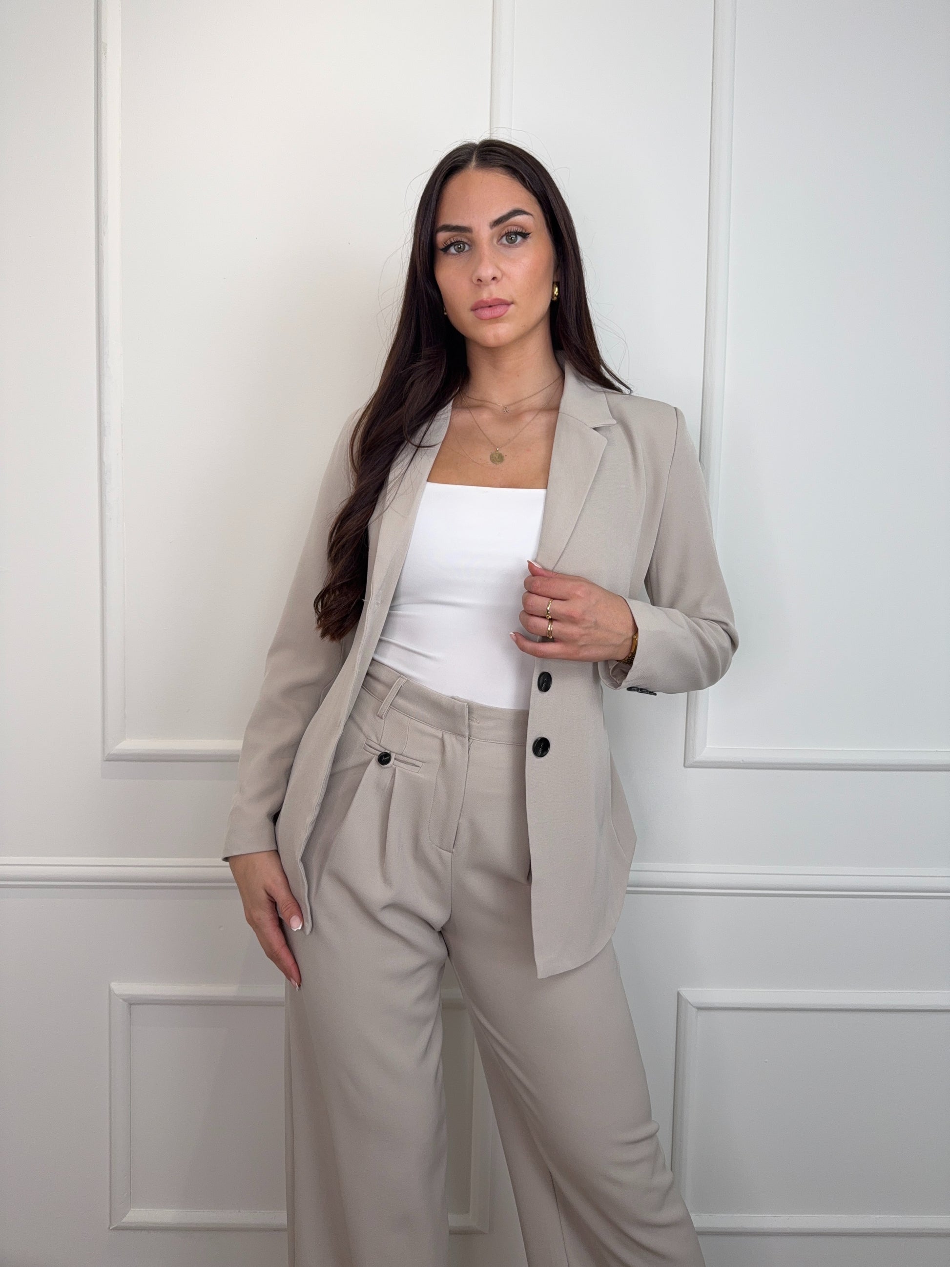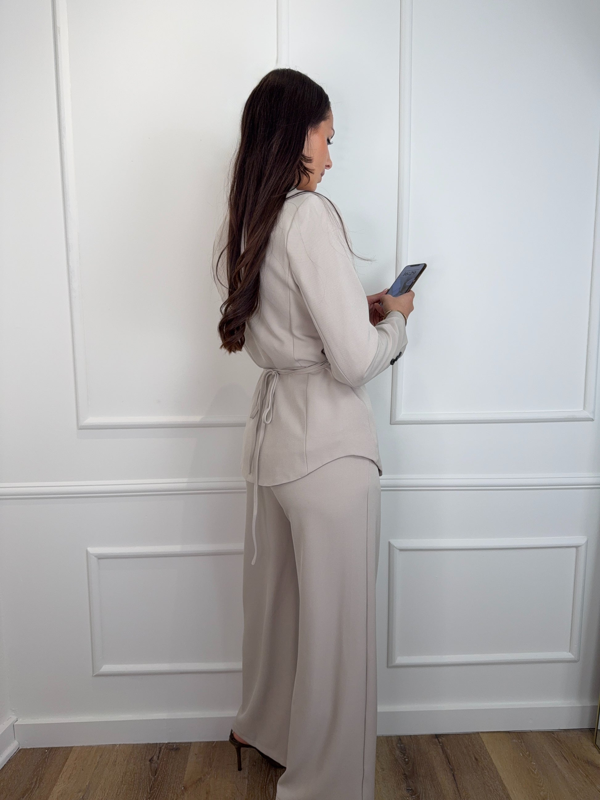 De top wordt afgemaakt door de knopen én je kan d.m.v. het bijbehoren ceintuur ook nog eens je taille laten spreken. Ook de pantalon heeft mooie details, zo heeft de voor én achterkant steekzakken, plus, zitten er aan de voorkant nog super mooie plooien.