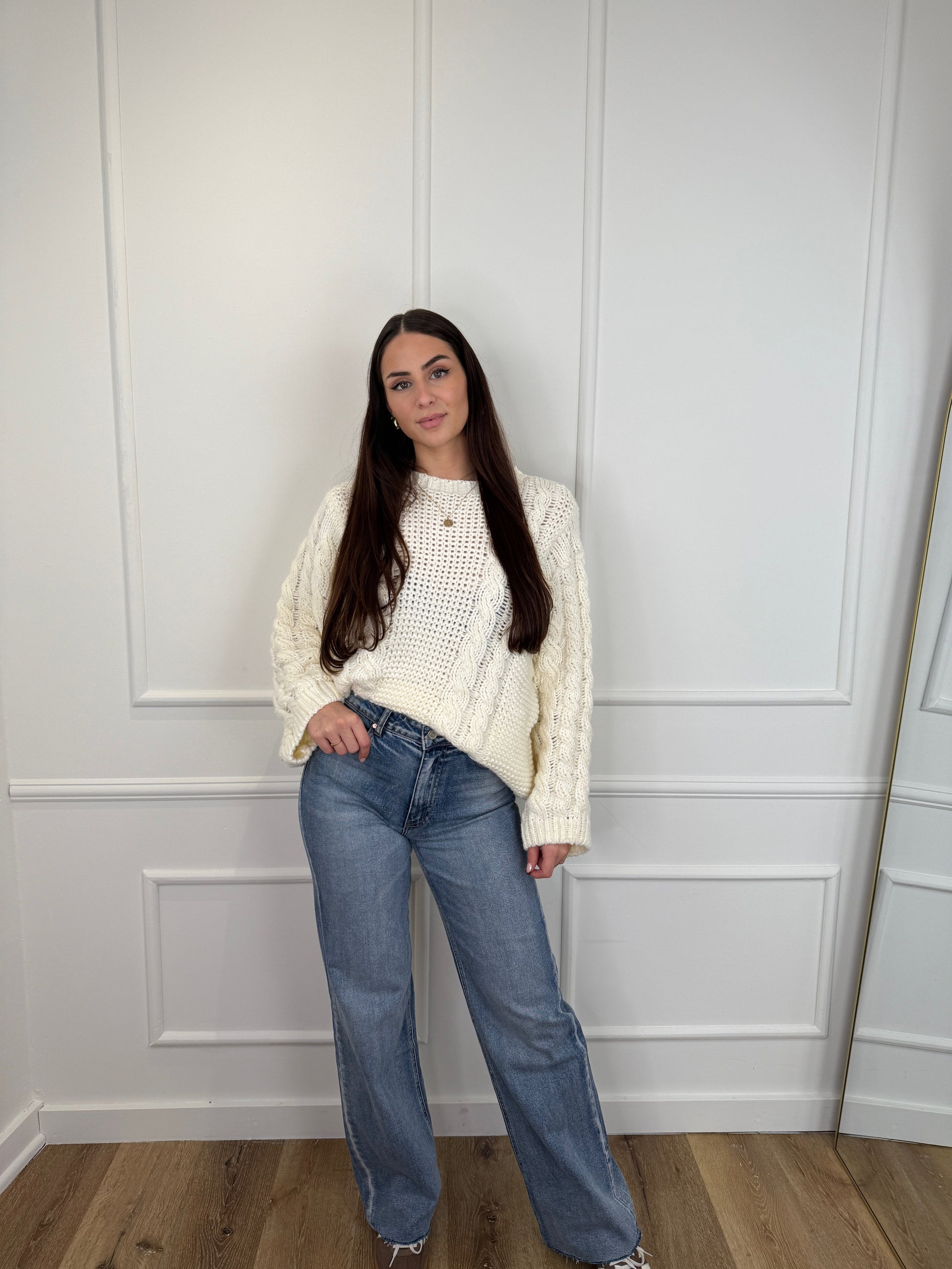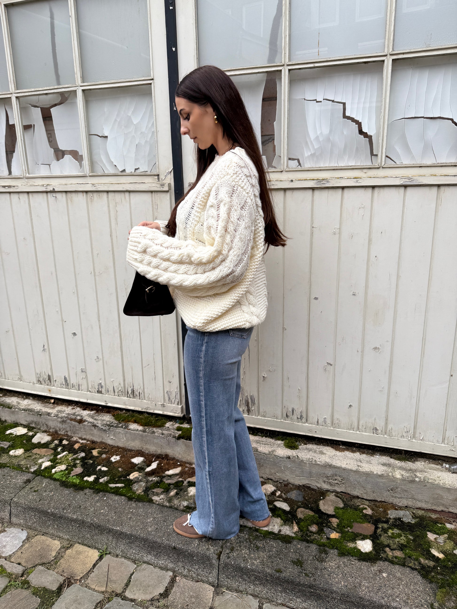 Lekker dikke en stevige trui met uitlopende mouwen. Verkrijgbaar in 2 kleuren.