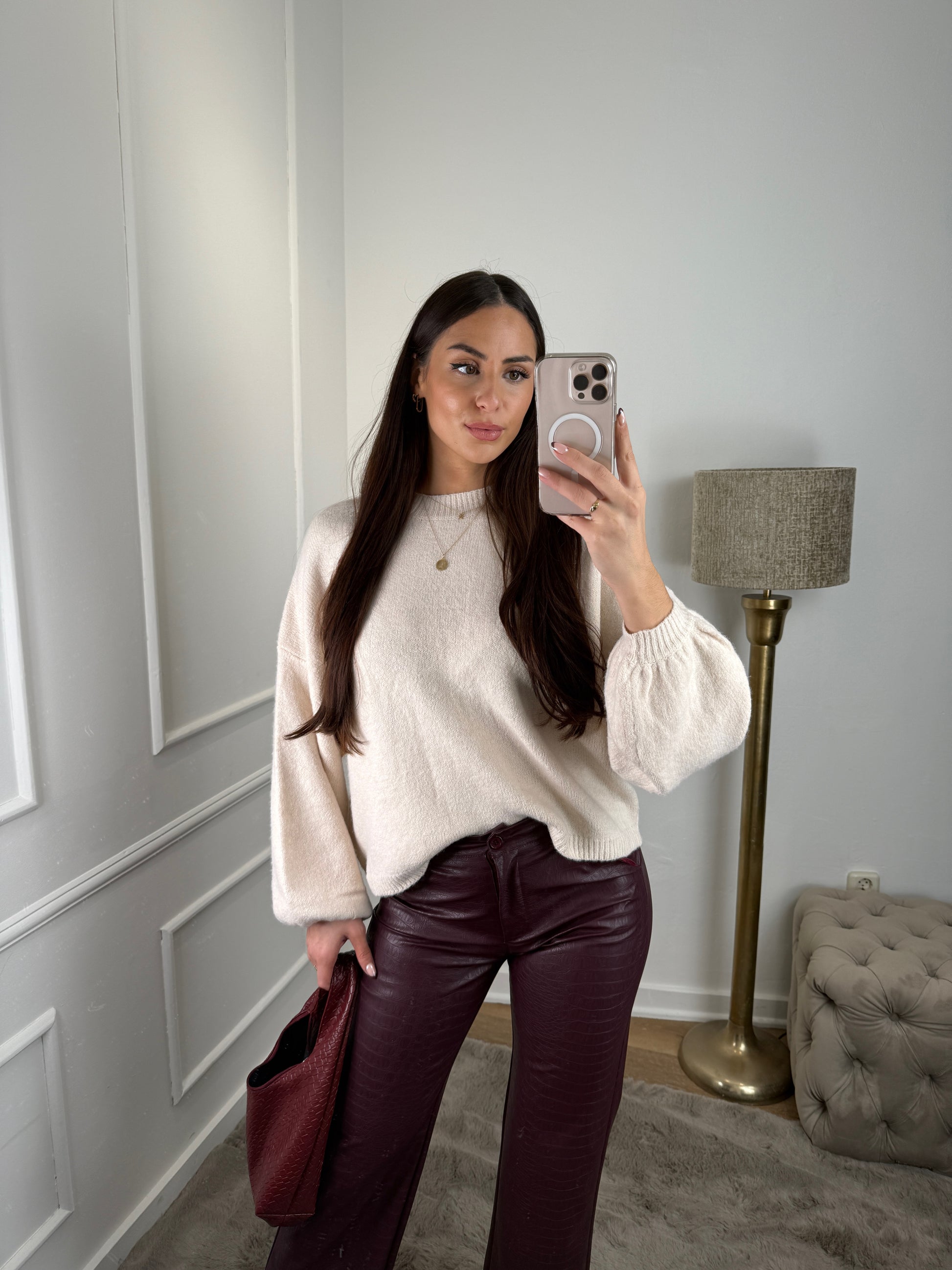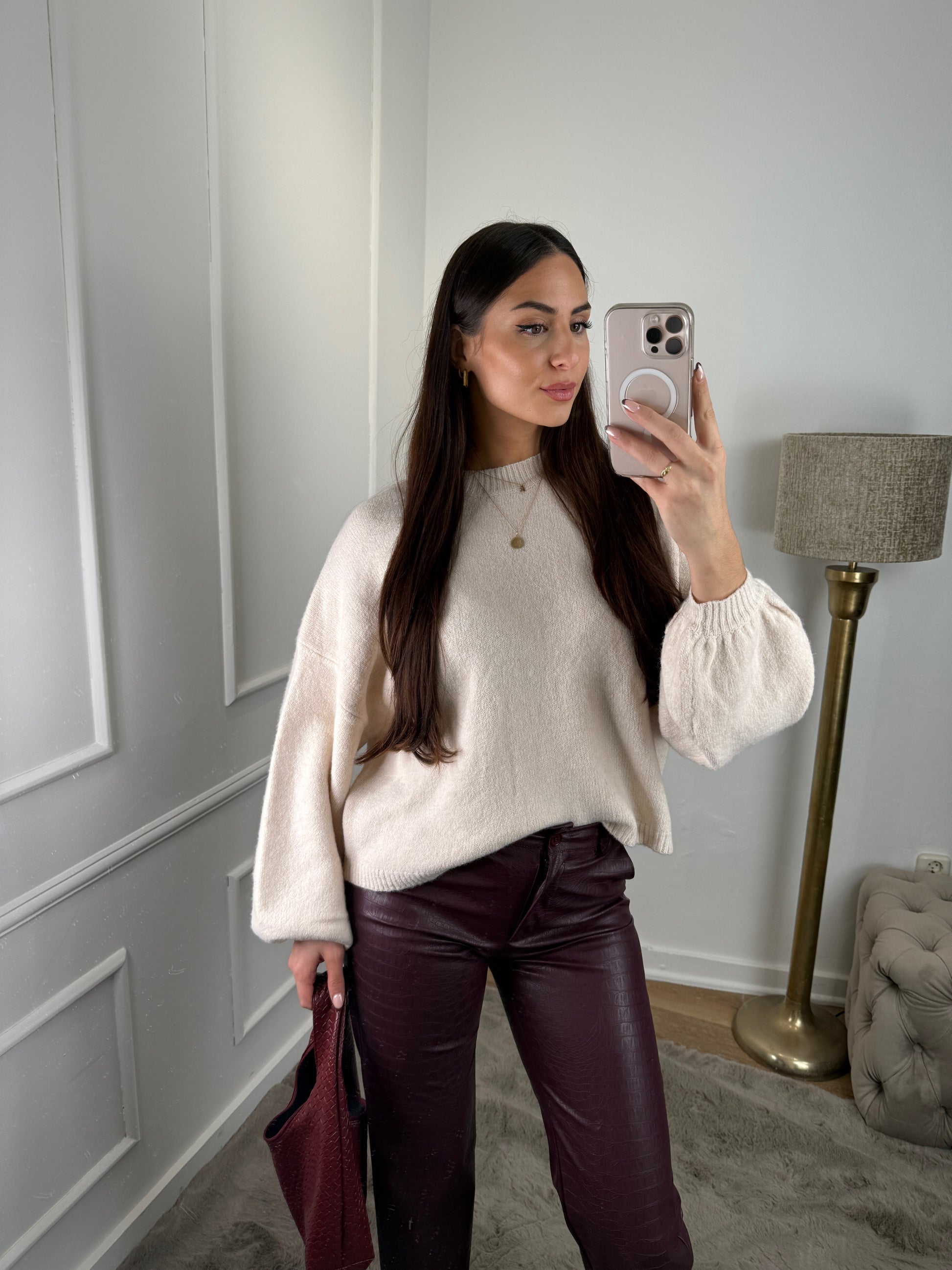 Heerlijk zachte trui met een ballonmouw, sluit mooi aan bij de taille. Verkrijgbaar in 3 kleuren.